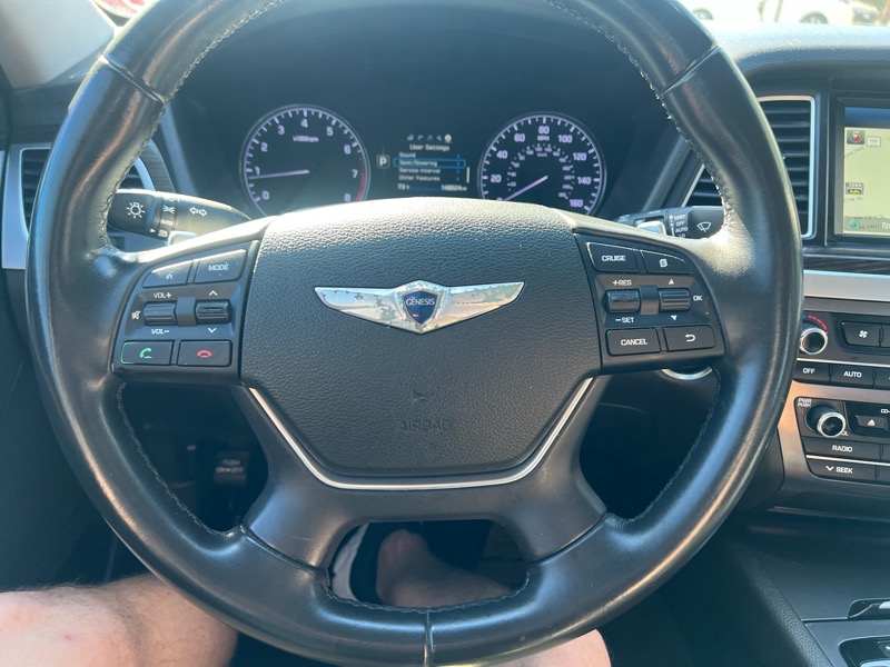 Hertel Auto Group just received this well maintained, 2015 Hyundai Genesis Sedan with just over 148K miles. The Genesis is equipped with a 3.8L V6, rated at 311 hp mated to a 8 speed automatic transmission. The Genesis is finished in Empire State Gray with a black leather interior. The Genesis originally stickered for $43205 and was considered a high contented model when it was new. This is a three owner vehicle with 43 service records with many being performed by the Hyundai Dealership. Carfax does show a clean history report with the exception of reported hail damage that wasn't repaired. I've taken several top surface pictures to show that the damage was very minor. As such, we've priced the vehicle accordingly. The Genesis runs exceptionally well and drives like a car with half the miles. The interior is in good overall condition with the exception of wear on the driver's seat (see photo) If you have questions, don't hesitate to call.